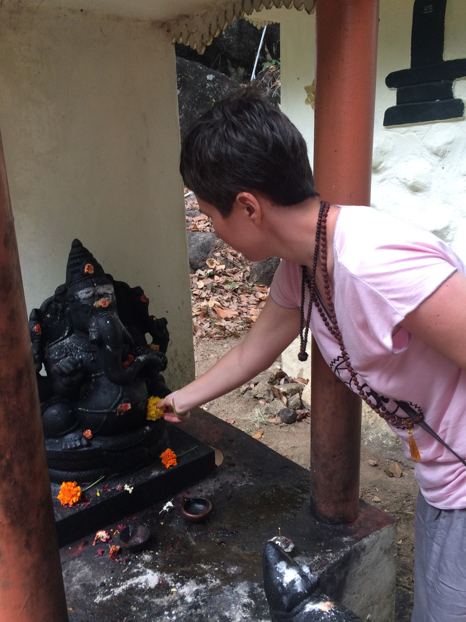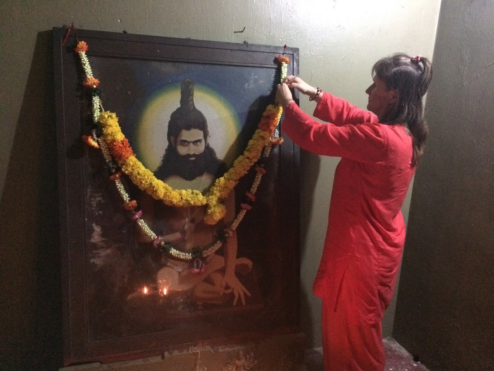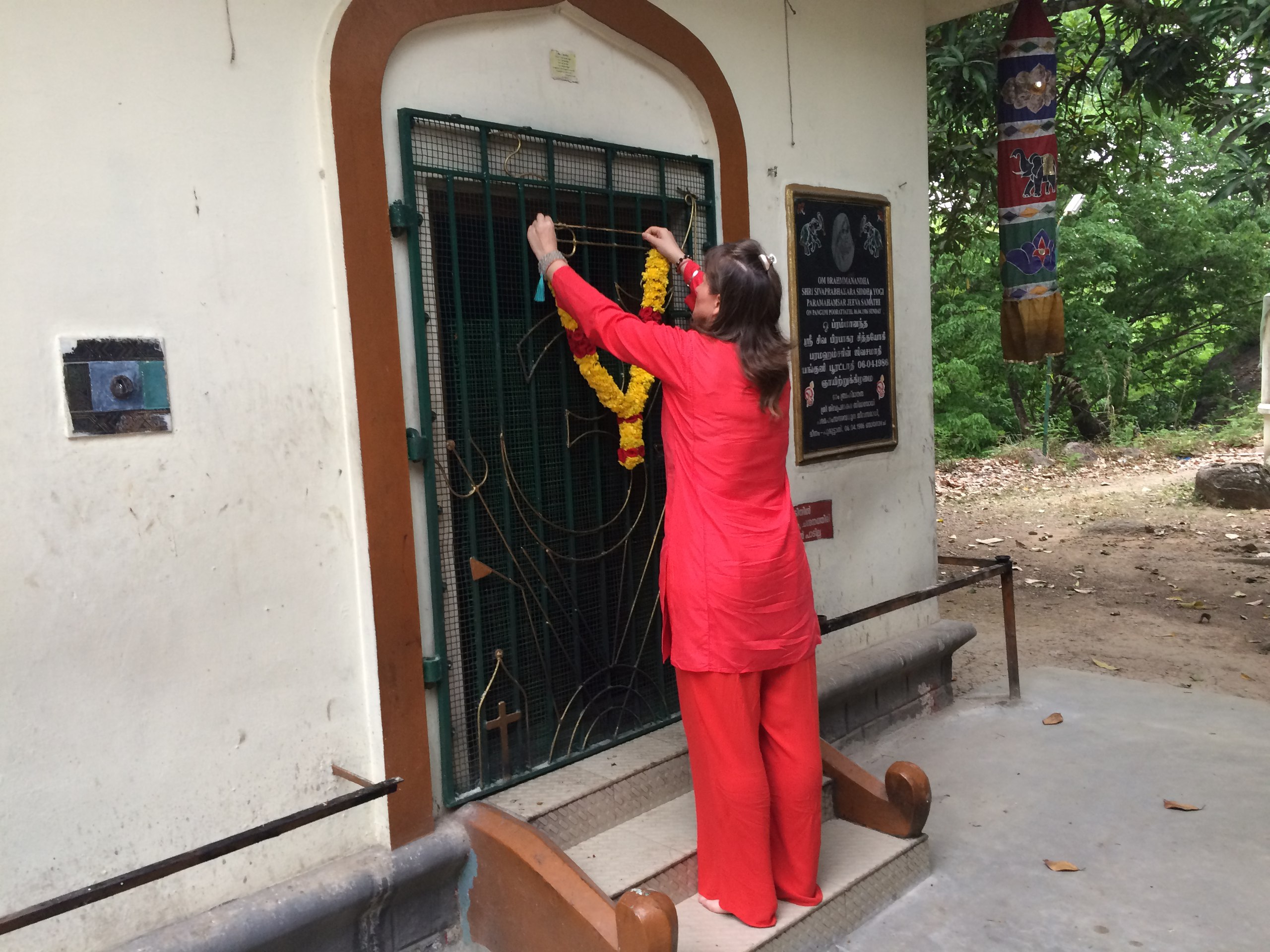 Сегодня мы прибыли в Омаллур на место дживасамадхи нашего Парамгуру. Мы поднесли гирлянды и цветы от сангхи и от всей общины, и также сделали подношения Ганеше и на Холме Тигра.