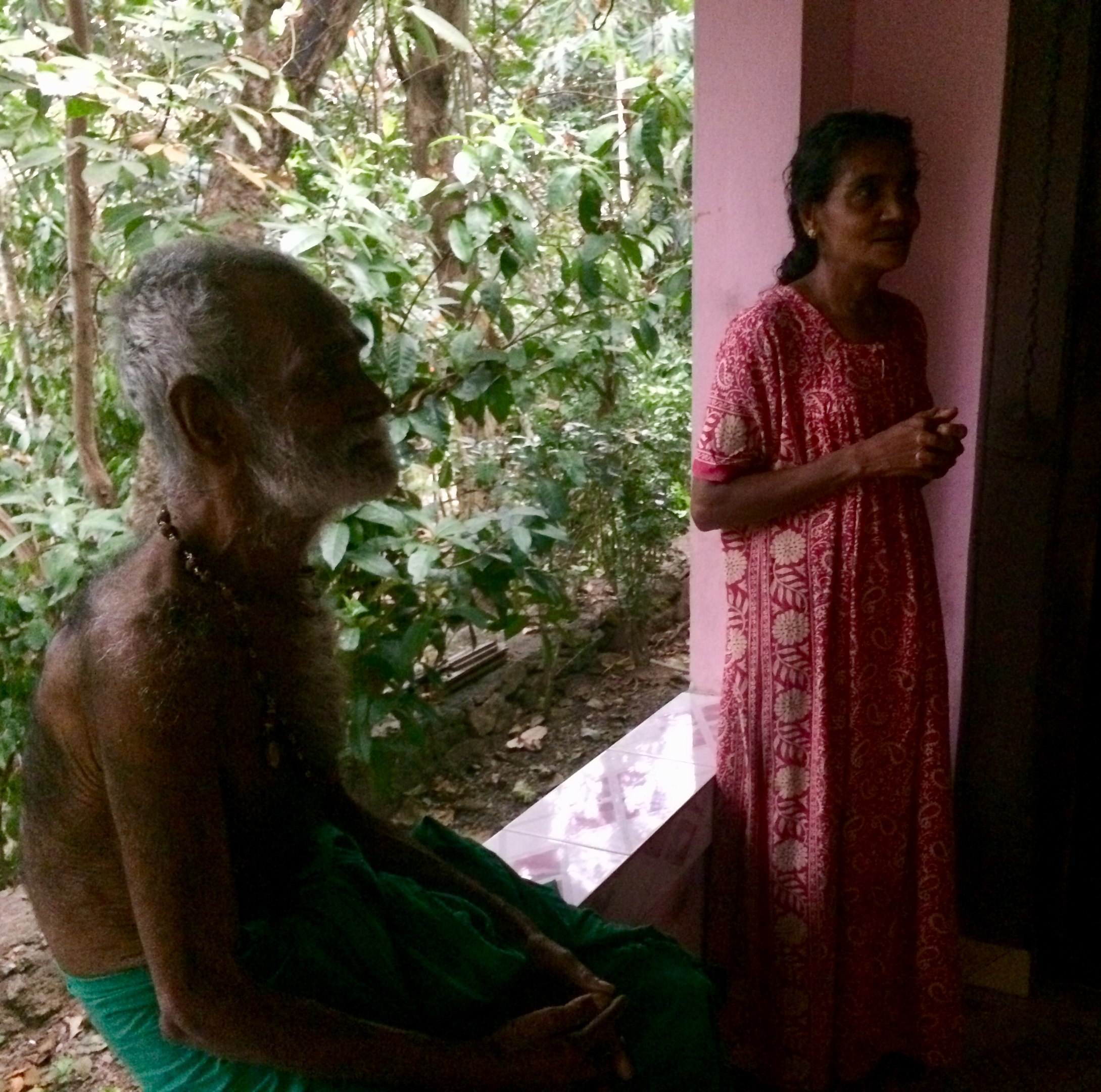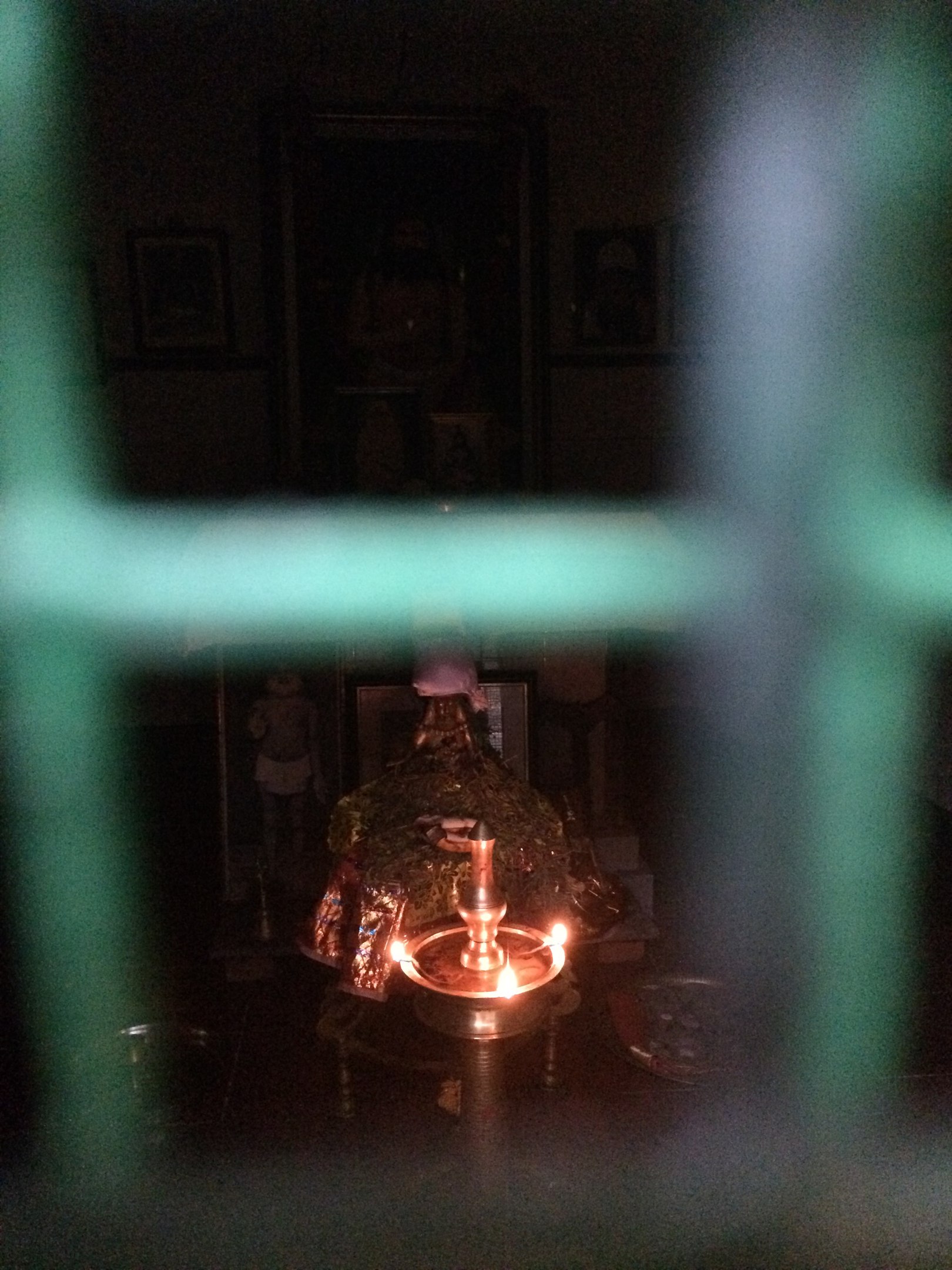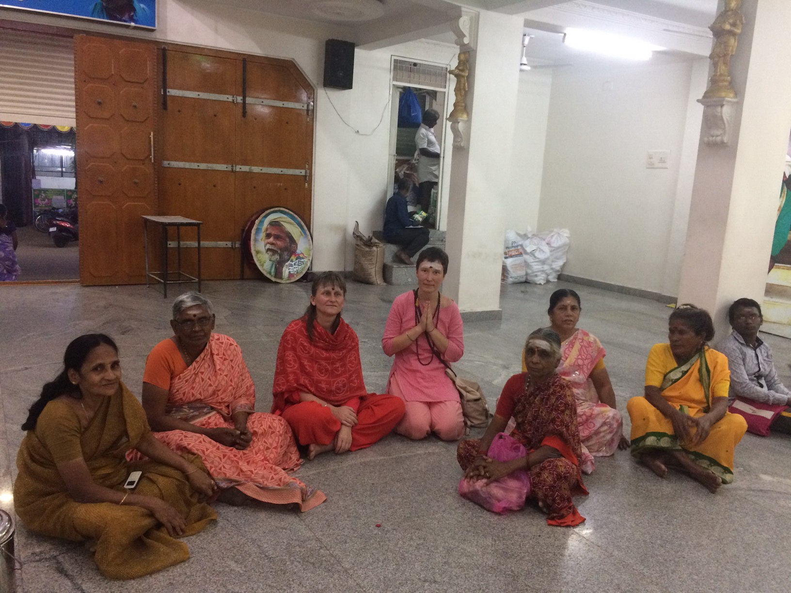Сегодня мы посетили преданного Свами Брахмананды Рагобанаира и его дочь Радху. Хоть они и не говорят ни слова по-английски, мы всегда рады пообщаться. Они нам открыли свою алтарную комнату, где хранится металлическая пластина, на которой Брахмананда оставил свои записи. Мы поднесли гирлянду и коснулись реликвий