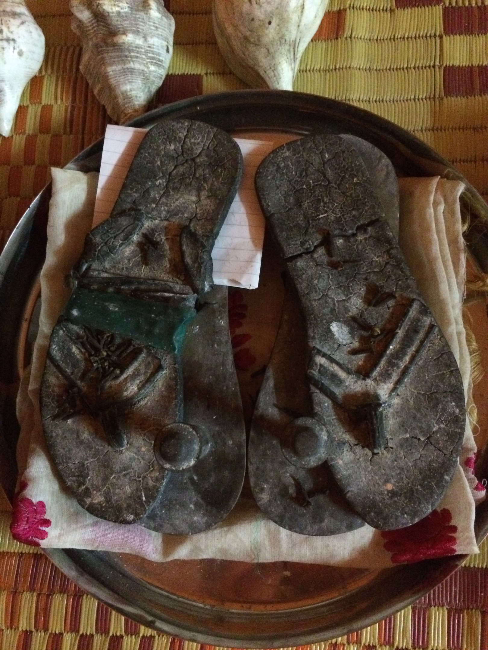 В первую очередь она показала его чапали (шлепки) – простые резиновые сланцы, потрескавшиеся от времени, большие камни, которые он сам принес, как и раковины, затем его волосы и в конце – шкатулку, которая была заставлена сверху реликвиями, и мы договорились, что на следующий день она покажет ее содержимое.