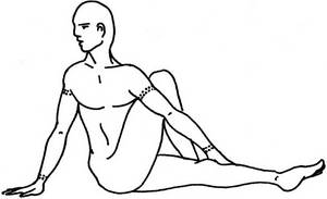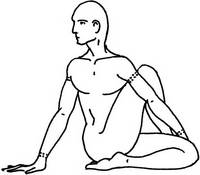 This pose is performed exactly the same way as Vakrasana. The only difference is in bending of the straight leg and placing it next to the buttock. The leg must be fully pressed to the floor.