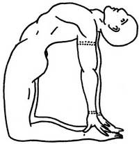 Bend forward, putting your hands under your knees as far as possible. Try to touch the floor with your head.
