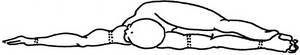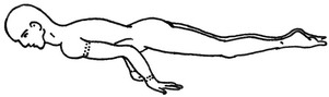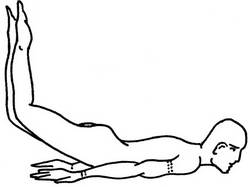 Lie on the floor. Stretch forward your hands with the palms put together.