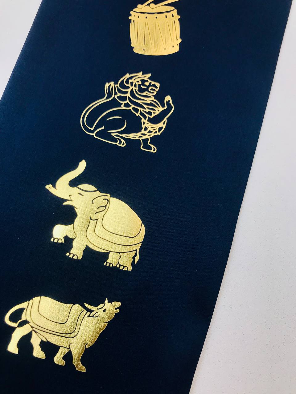 Благоприятные знаки 19*64, атлас с золотом, цвет синий