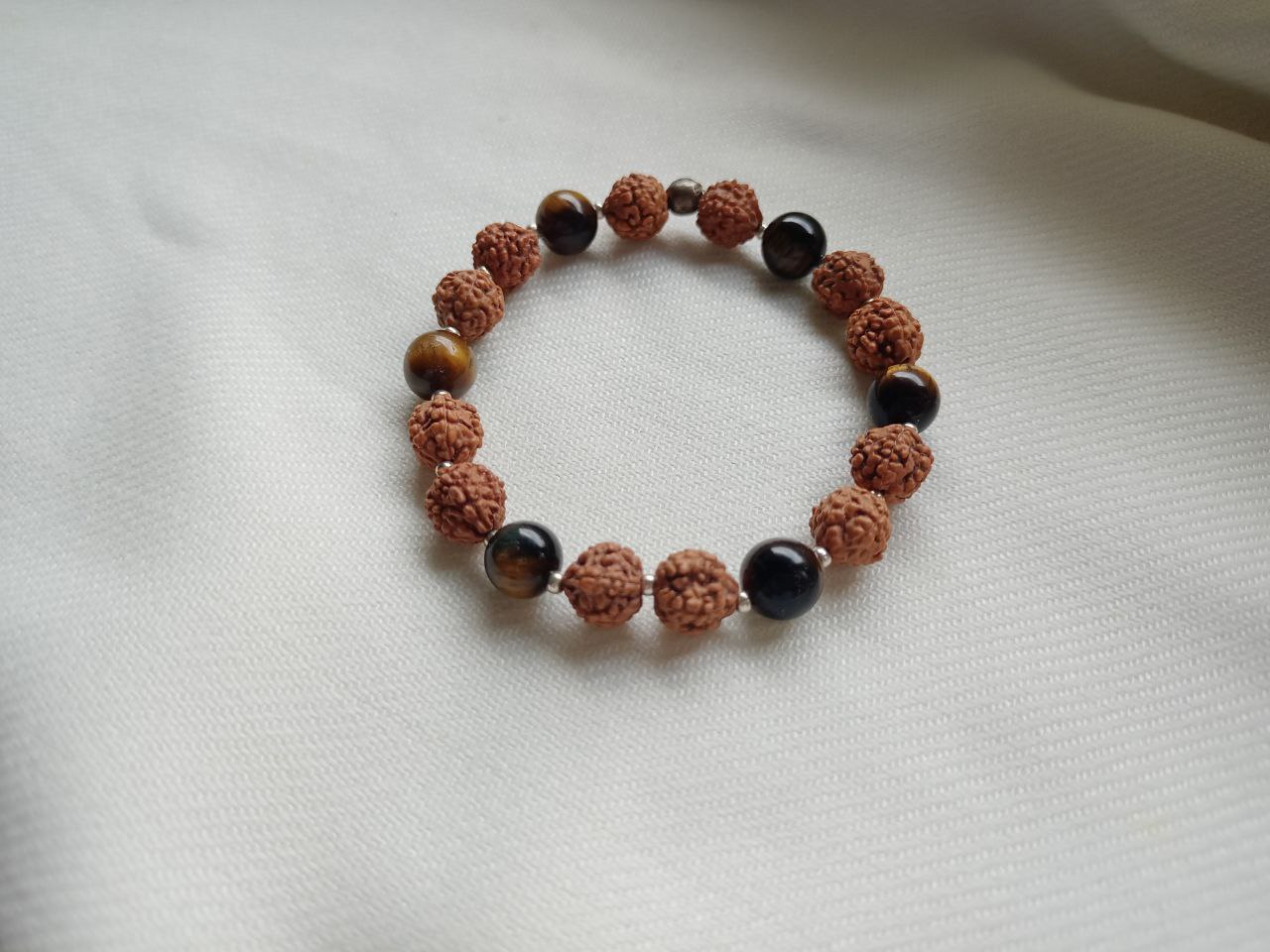 Браслет из рудракши и тигрового глаза, 18 см.