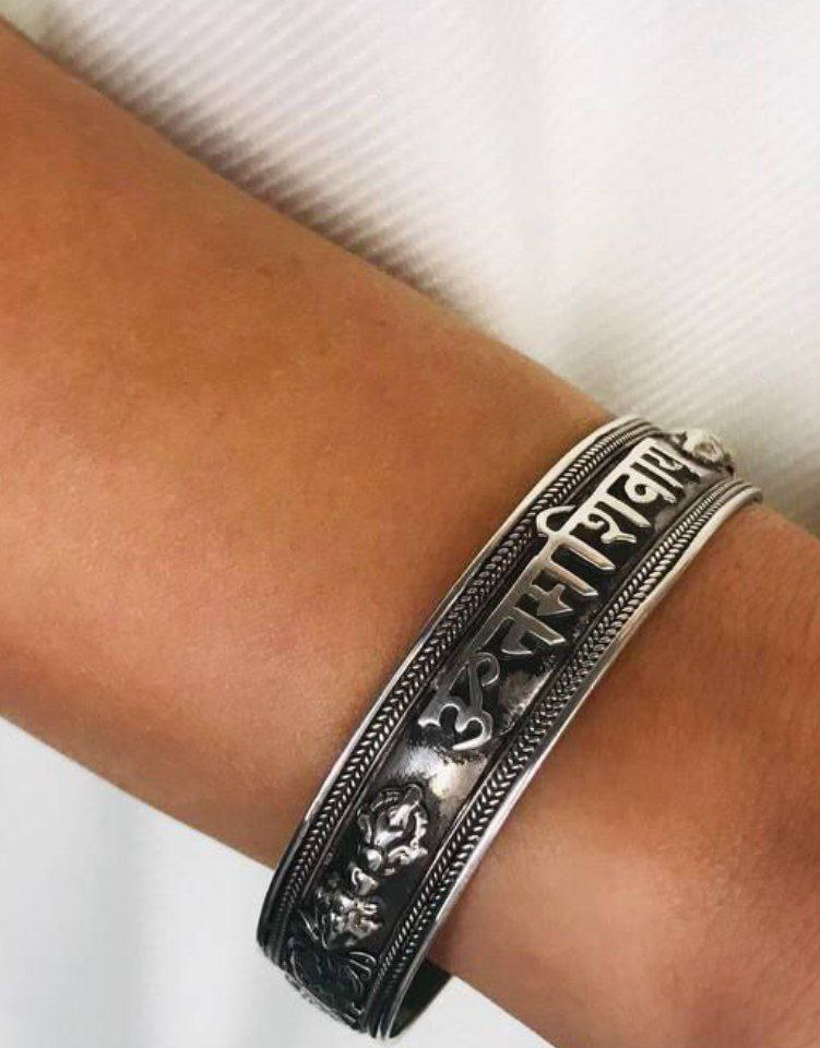 Серебряный браслет с мантрой "Ом Намах Шивая"
